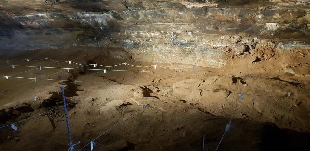 Beyond the stalagmite lies an archaeological excavation that stretches from the recent past to almost two million years ago, providing unique insights into the deep human story represented in this cave.